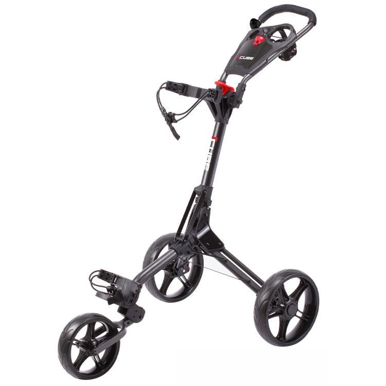 Den uppdaterade Cube Cart 3.0 3-hjuliga Golfvagnen väger otroliga 6,6 kg och har en kompakt hopfällningsdimension på endast 49x44x37 cm. Ett oöverträffat rekord för den lättaste och mest kompakta premium 3-hjuliga tryckvagnen. Cube Cart-vagnen är enkel att fälla upp och ned, den har tre justerbara höjdpositioner och en hjulbas på 72 cm som ger stor stabilitet på alla typer av terräng.